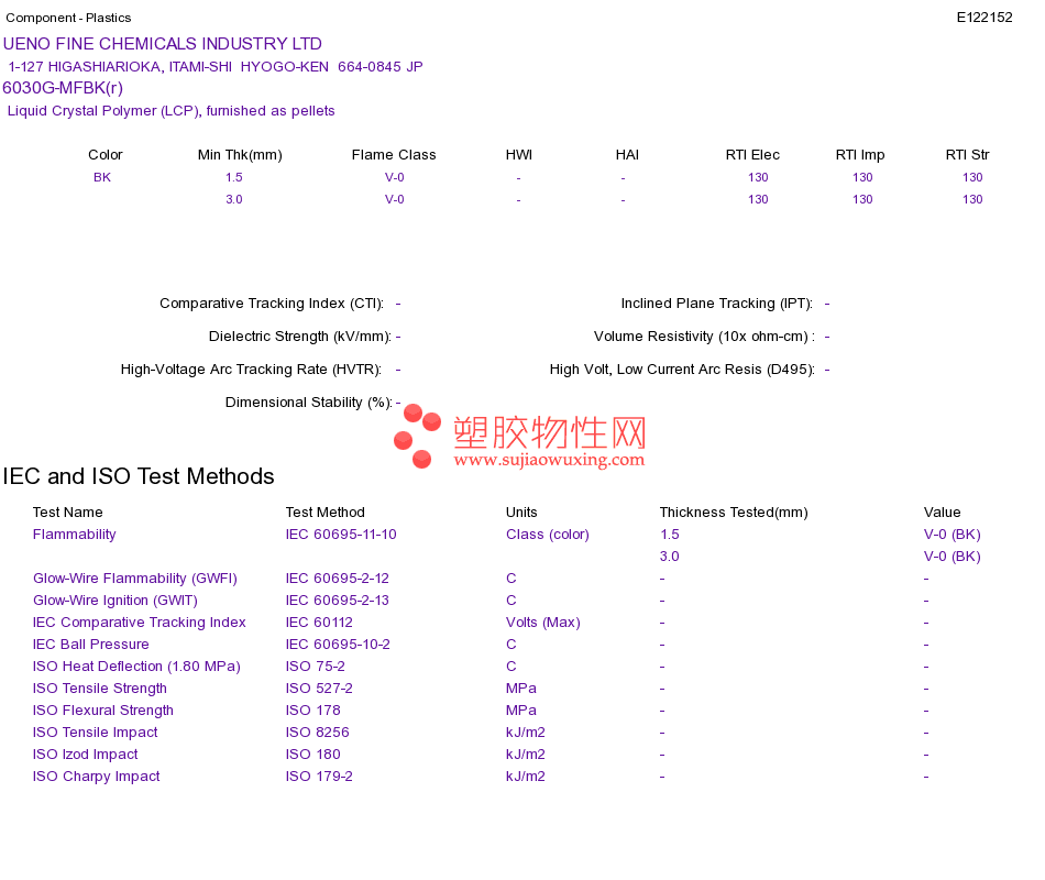 Liquid Crystal Polymer (LCP) 6030G-MFBK(r)UL黄卡资料请登陆会员后查看,如需电子档资料,请联系客服! 赵生:手机13424755533;QQ:27660005