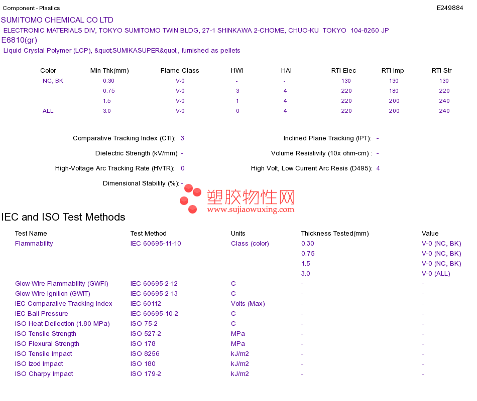 Liquid Crystal Polymer (LCP) E6810(gr)UL黄卡资料请登陆会员后查看,如需电子档资料,请联系客服! 赵生:手机13424755533;QQ:27660005