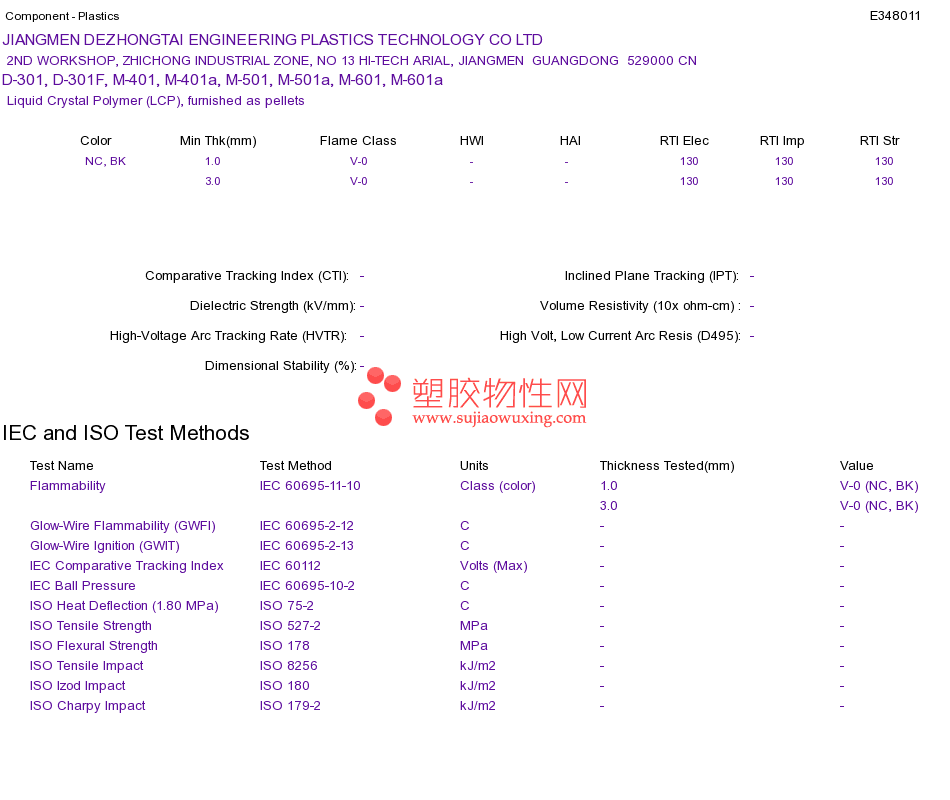 Liquid Crystal Polymer (LCP) D-301, D-301F, M-401, M-401a, M-501, M-501a, M-601, M-601aUL黄卡资料请登陆会员后查看,如需电子档资料,请联系客服! 赵生:手机13424755533;QQ:27660005