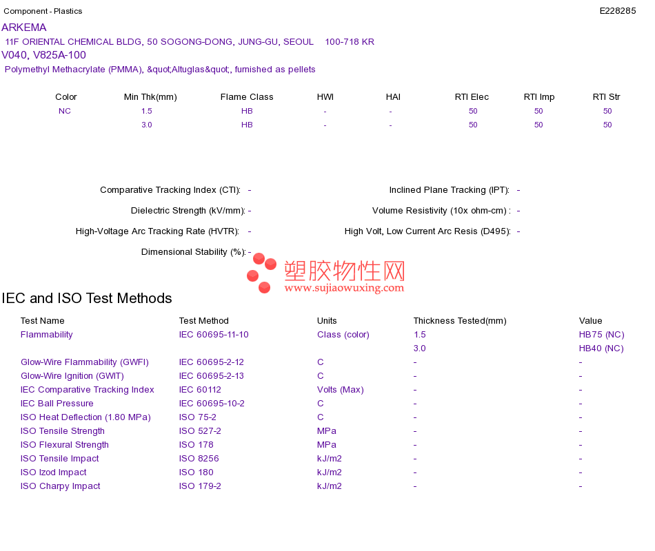 Polymethyl Methacrylate (PMMA) V040, V825A-100UL黄卡资料请登陆会员后查看,如需电子档资料,请联系客服! 赵生:手机13424755533;QQ:27660005