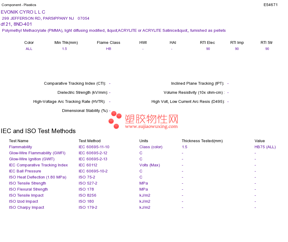 Polymethyl Methacrylate (PMMA) df 21, 8ND-401UL黄卡资料请登陆会员后查看,如需电子档资料,请联系客服! 赵生:手机13424755533;QQ:27660005