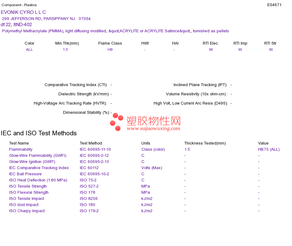 Polymethyl Methacrylate (PMMA) df 22, 8ND-402UL黄卡资料请登陆会员后查看,如需电子档资料,请联系客服! 赵生:手机13424755533;QQ:27660005