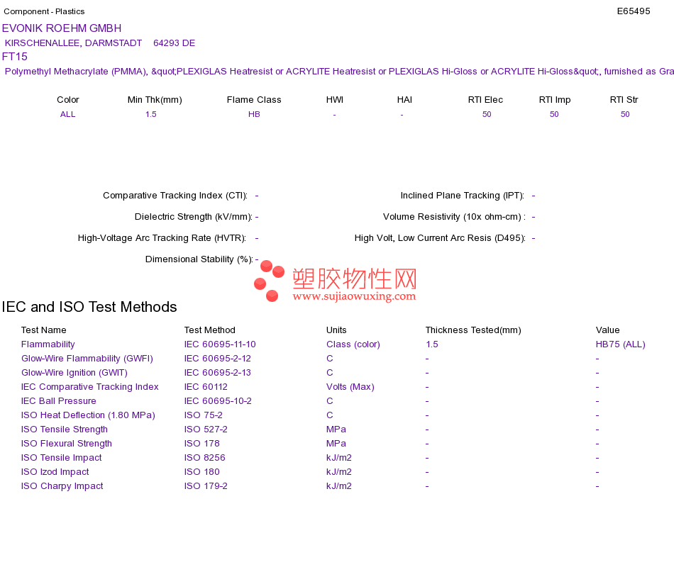 Polymethyl Methacrylate (PMMA) FT15UL黄卡资料请登陆会员后查看,如需电子档资料,请联系客服! 赵生:手机13424755533;QQ:27660005