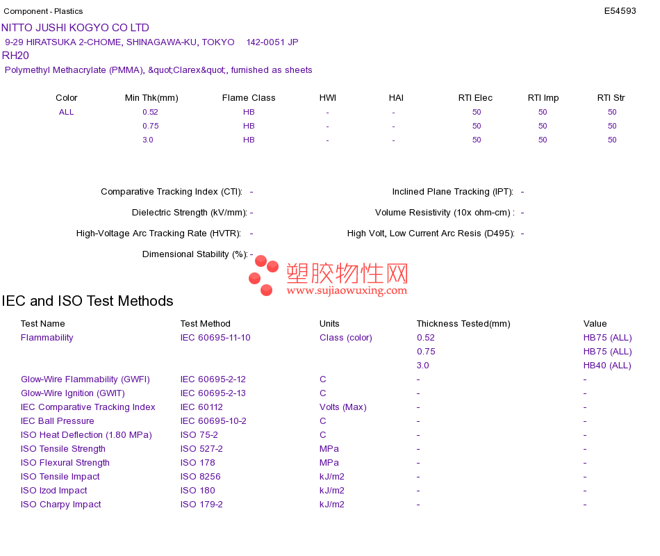 Polymethyl Methacrylate (PMMA) RH20UL黄卡资料请登陆会员后查看,如需电子档资料,请联系客服! 赵生:手机13424755533;QQ:27660005