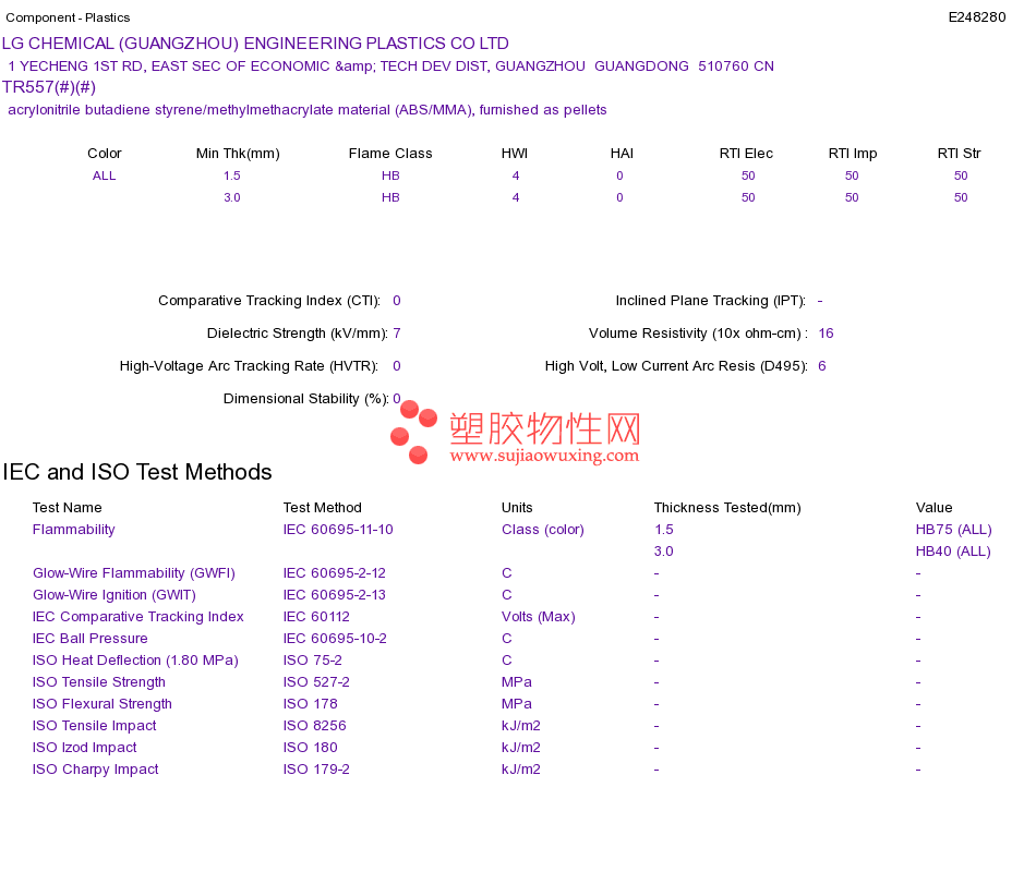 acrylonitrile butadiene styrene/methylmethacrylate material (ABS/MMA) TR557(#)(#)UL黄卡资料请登陆会员后查看,如需电子档资料,请联系客服! 赵生:手机13424755533;QQ:27660005