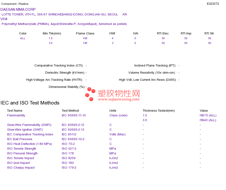 Polymethyl Methacrylate (PMMA) VH4UL黄卡资料请登陆会员后查看,如需电子档资料,请联系客服! 赵生:手机13424755533;QQ:27660005