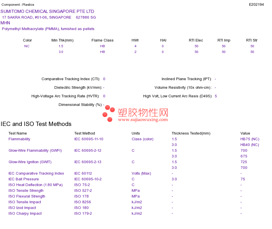 Polymethyl Methacrylate (PMMA) MHNUL黄卡资料请登陆会员后查看,如需电子档资料,请联系客服! 赵生:手机13424755533;QQ:27660005