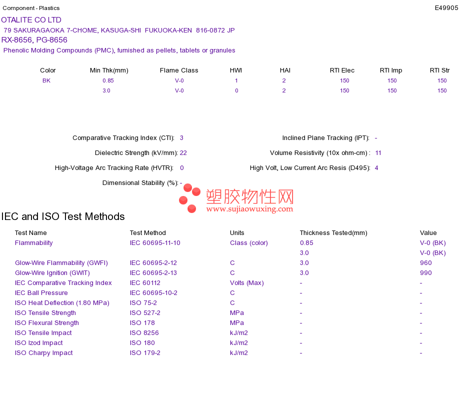 Phenolic Molding Compounds (PMC) RX-8656, PG-8656UL黄卡资料请登陆会员后查看,如需电子档资料,请联系客服! 赵生:手机13424755533;QQ:27660005