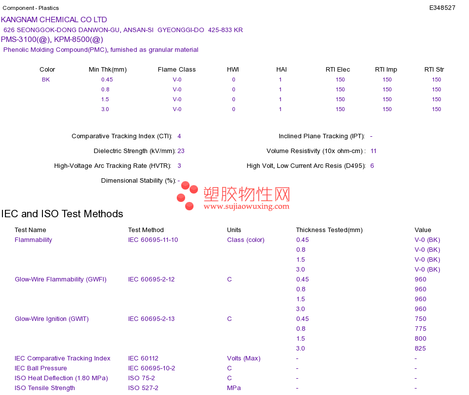 Phenolic Molding Compound(PMC) PMS-3100(@), KPM-8500(@)UL黄卡资料请登陆会员后查看,如需电子档资料,请联系客服! 赵生:手机13424755533;QQ:27660005