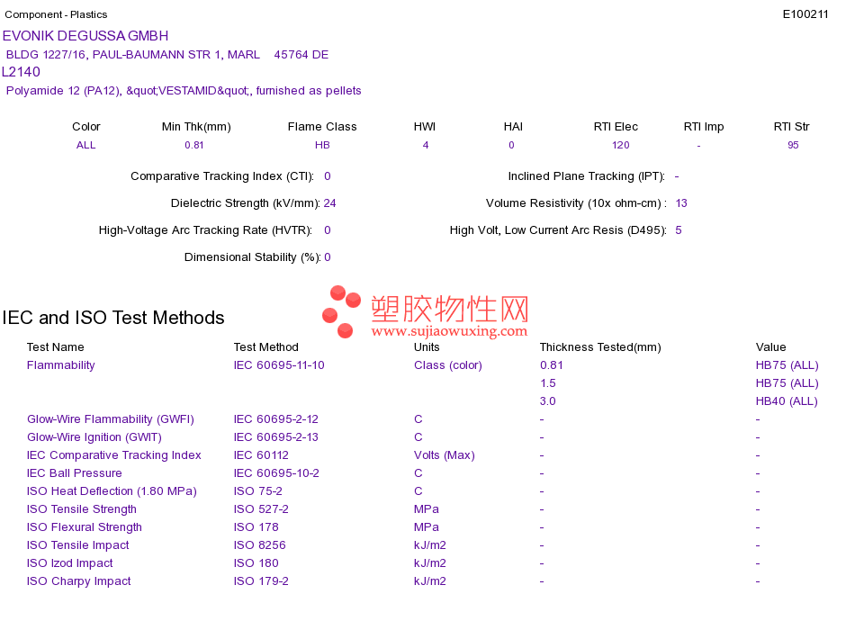 Polyamide 12 (PA12) L2140UL黄卡资料请登陆会员后查看,如需电子档资料,请联系客服! 赵生:手机13424755533;QQ:27660005