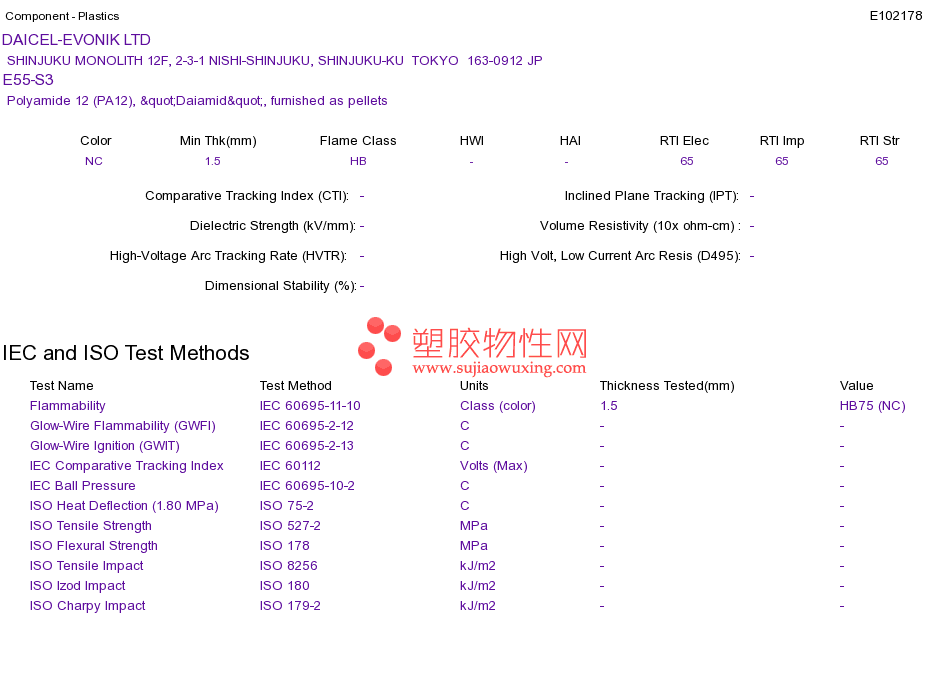 Polyamide 12 (PA12) E55-S3UL黄卡资料请登陆会员后查看,如需电子档资料,请联系客服! 赵生:手机13424755533;QQ:27660005