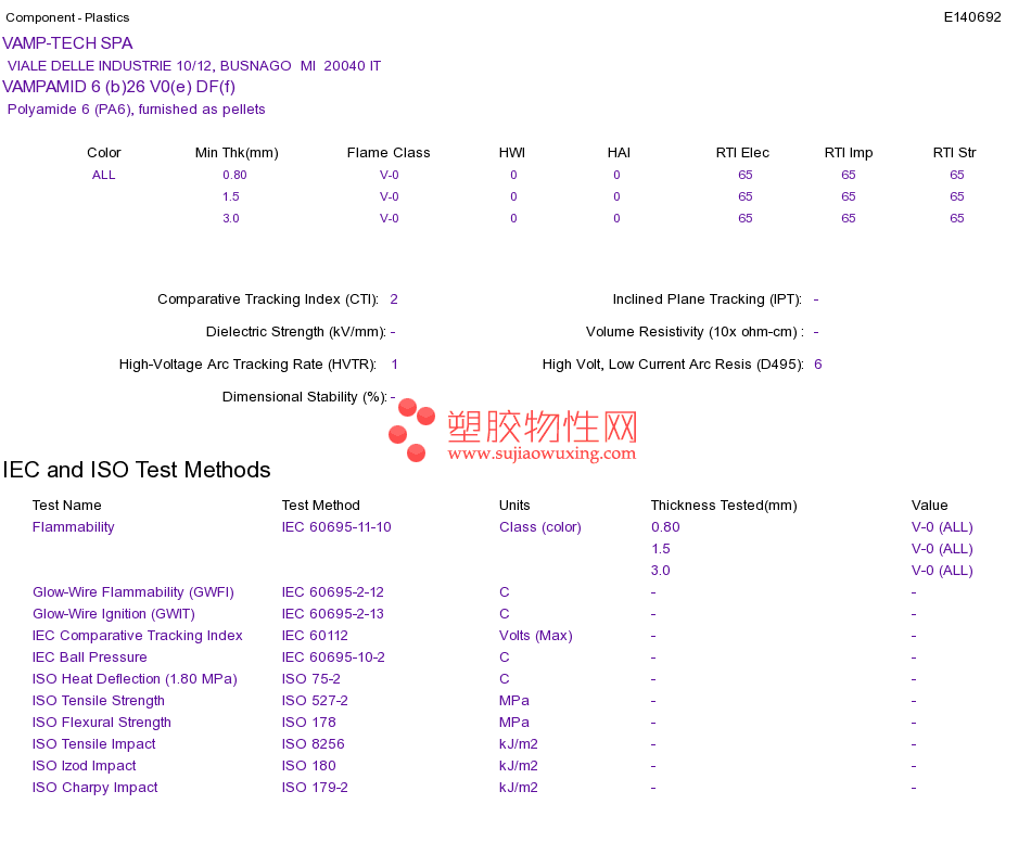 Polyamide 6 (PA6) VAMPAMID 6 (b)26 V0(e) DF(f)UL黄卡资料请登陆会员后查看,如需电子档资料,请联系客服! 赵生:手机13424755533;QQ:27660005