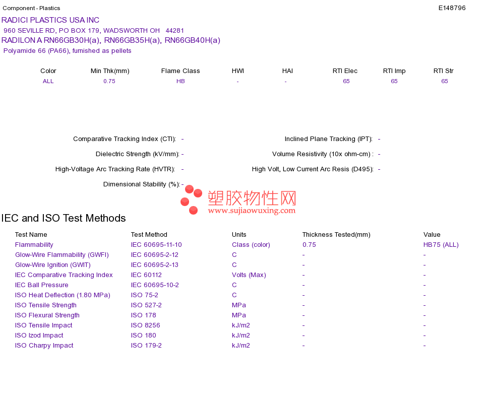 Polyamide 66 (PA66) RADILON A RN66GB30H(a), RN66GB35H(a), RN66GB40H(a)UL黄卡资料请登陆会员后查看,如需电子档资料,请联系客服! 赵生:手机13424755533;QQ:27660005
