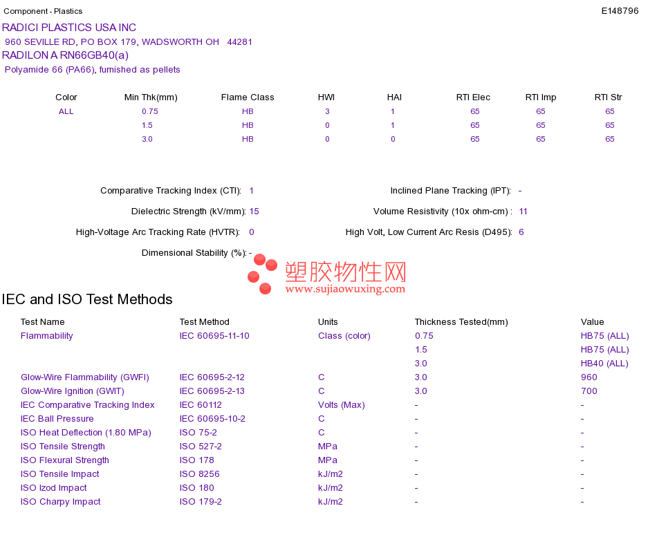 Polyamide 66 (PA66) RADILON A RN66GB40(a) UL黄卡
