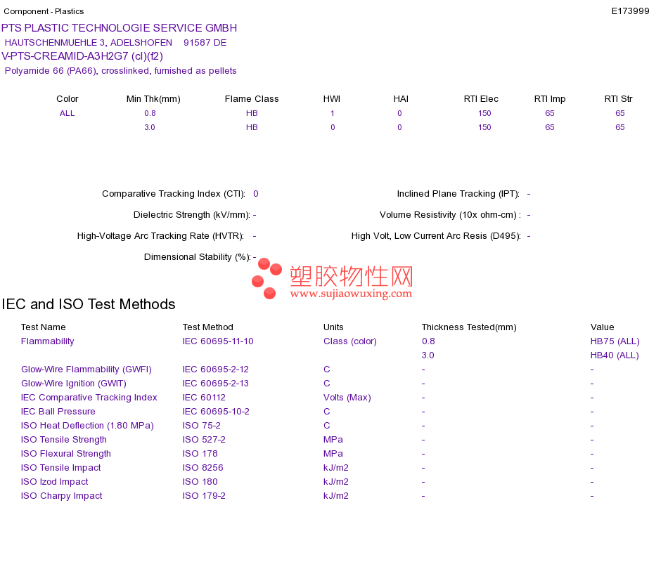 Polyamide 66 (PA66) V-PTS-CREAMID-A3H2G7 (cl)(f2)UL黄卡资料请登陆会员后查看,如需电子档资料,请联系客服! 赵生:手机13424755533;QQ:27660005