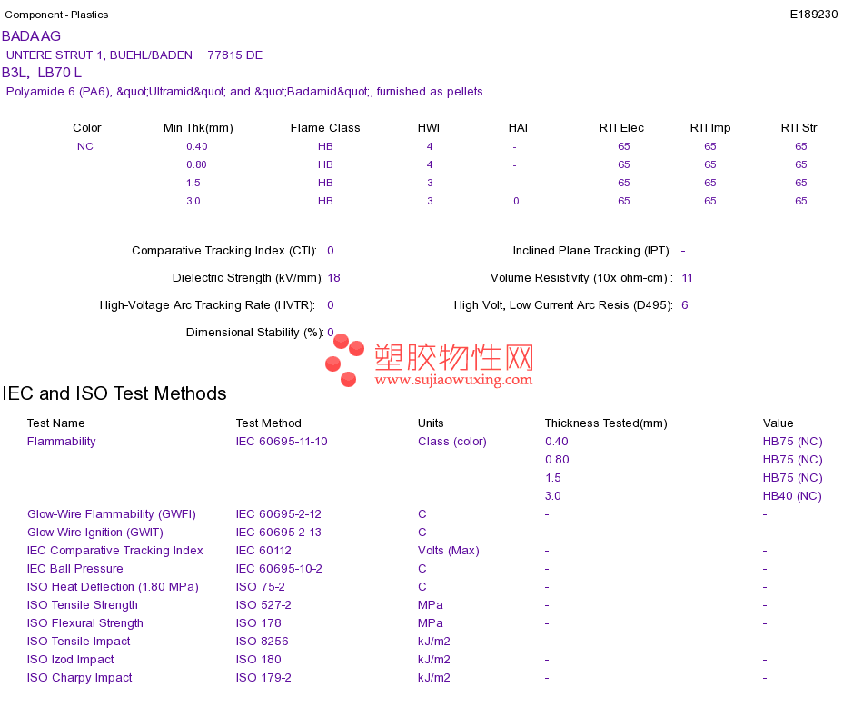 Polyamide 6 (PA6) B3L, LB70 LUL黄卡资料请登陆会员后查看,如需电子档资料,请联系客服! 赵生:手机13424755533;QQ:27660005