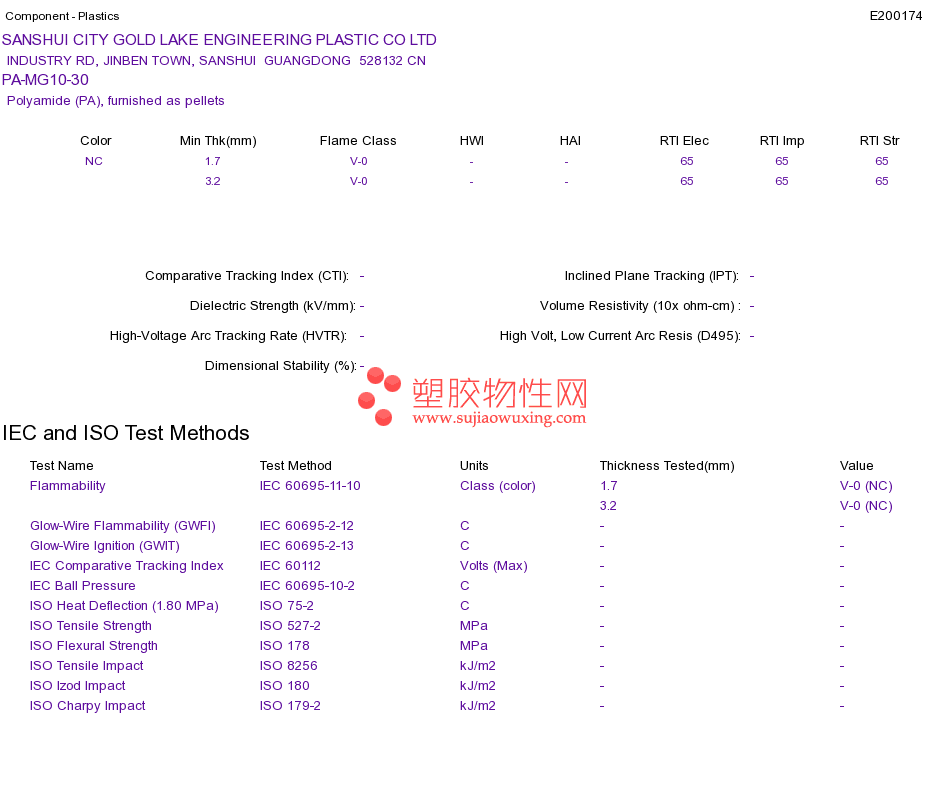 Polyamide (PA) PA-MG10-30UL黄卡资料请登陆会员后查看,如需电子档资料,请联系客服! 赵生:手机13424755533;QQ:27660005
