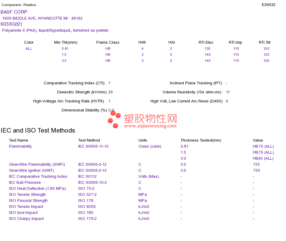 Polyamide 6 (PA6) 6033G(t2)UL黄卡资料请登陆会员后查看,如需电子档资料,请联系客服! 赵生:手机13424755533;QQ:27660005
