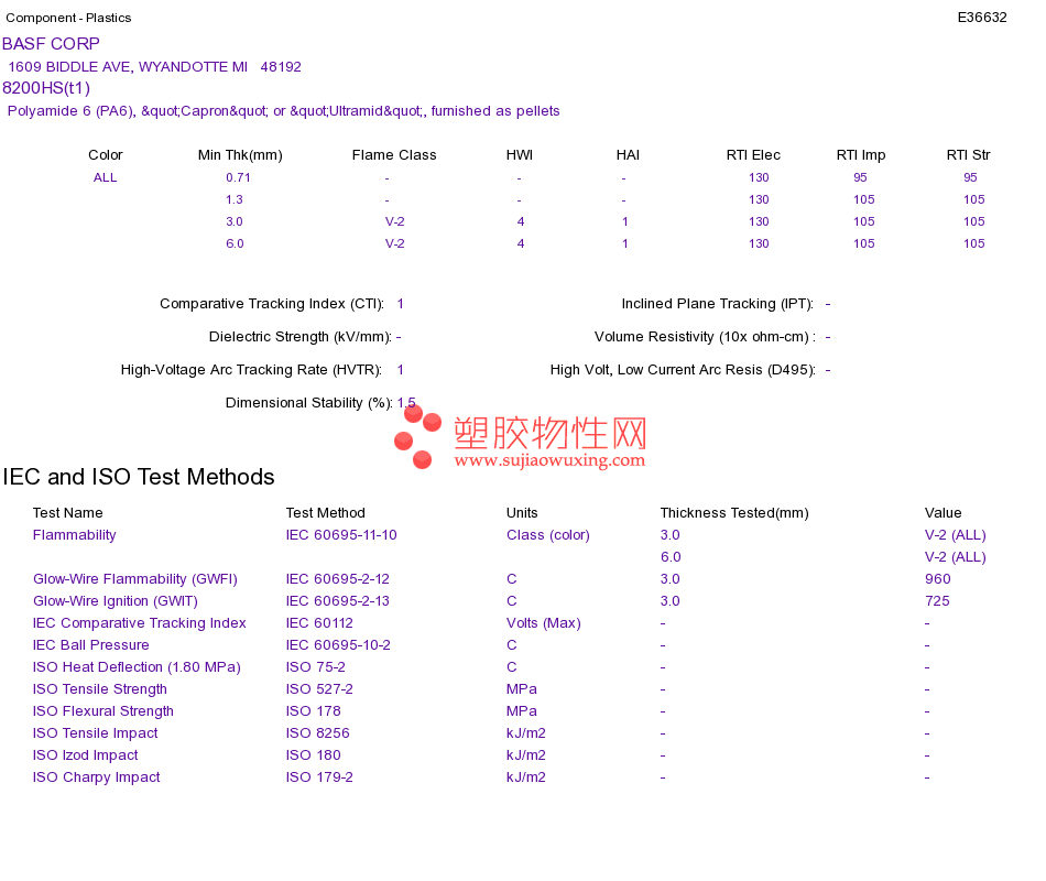 Polyamide 6 (PA6) 8200HS(t1)UL黄卡资料请登陆会员后查看,如需电子档资料,请联系客服! 赵生:手机13424755533;QQ:27660005