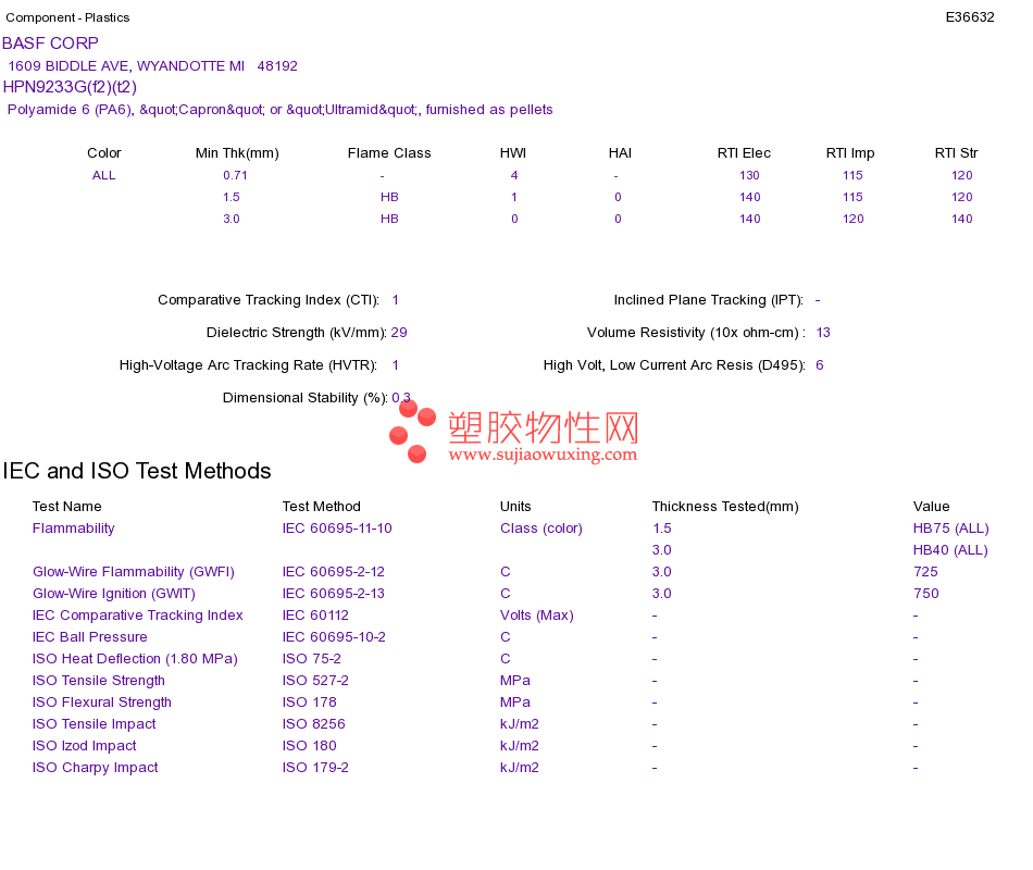 Polyamide 6 (PA6) HPN9233G(f2)(t2)UL黄卡资料请登陆会员后查看,如需电子档资料,请联系客服! 赵生:手机13424755533;QQ:27660005