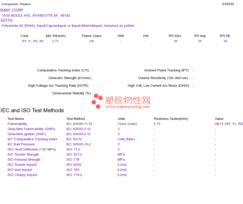 Polyamide 66 (PA66) 5231GUL黄卡资料请登陆会员后查看,如需电子档资料,请联系客服! 赵生:手机13424755533;QQ:27660005