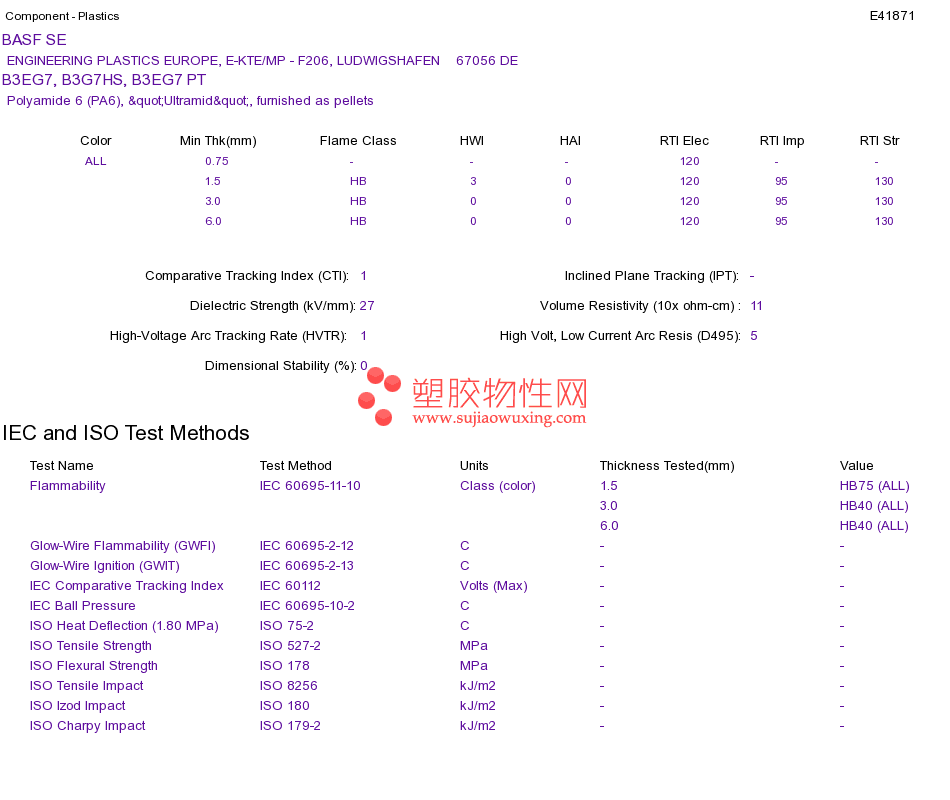 Polyamide 6 (PA6) B3EG7, B3G7HS, B3EG7 PTUL黄卡资料请登陆会员后查看,如需电子档资料,请联系客服! 赵生:手机13424755533;QQ:27660005
