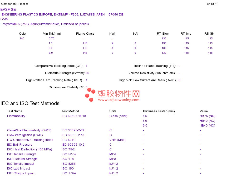 Polyamide 6 (PA6) B5WUL黄卡资料请登陆会员后查看,如需电子档资料,请联系客服! 赵生:手机13424755533;QQ:27660005