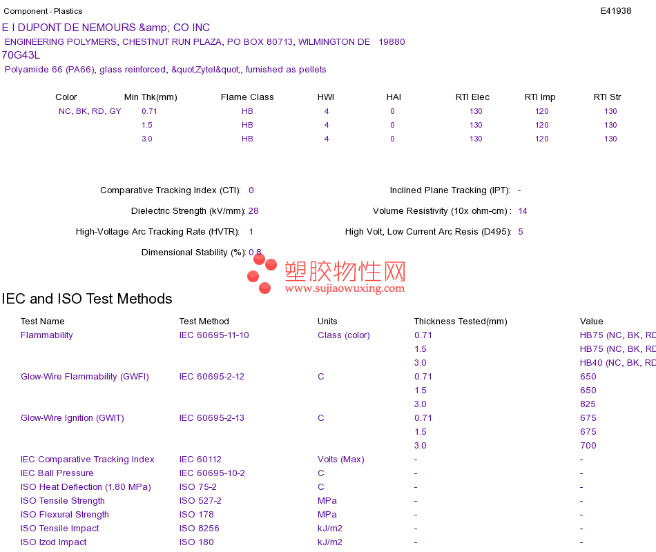 Polyamide 66 (PA66) 70G43LUL黄卡资料请登陆会员后查看,如需电子档资料,请联系客服! 赵生:手机13424755533;QQ:27660005