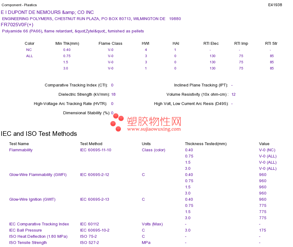 Polyamide 66 (PA66) FR7025V0F(+)UL黄卡资料请登陆会员后查看,如需电子档资料,请联系客服! 赵生:手机13424755533;QQ:27660005
