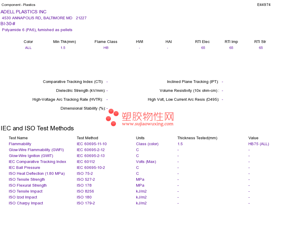 Polyamide 6 (PA6) BI-30-#UL黄卡资料请登陆会员后查看,如需电子档资料,请联系客服! 赵生:手机13424755533;QQ:27660005
