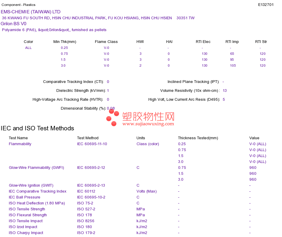 Polyamide 6 (PA6) Grilon BS V0UL黄卡资料请登陆会员后查看,如需电子档资料,请联系客服! 赵生:手机13424755533;QQ:27660005