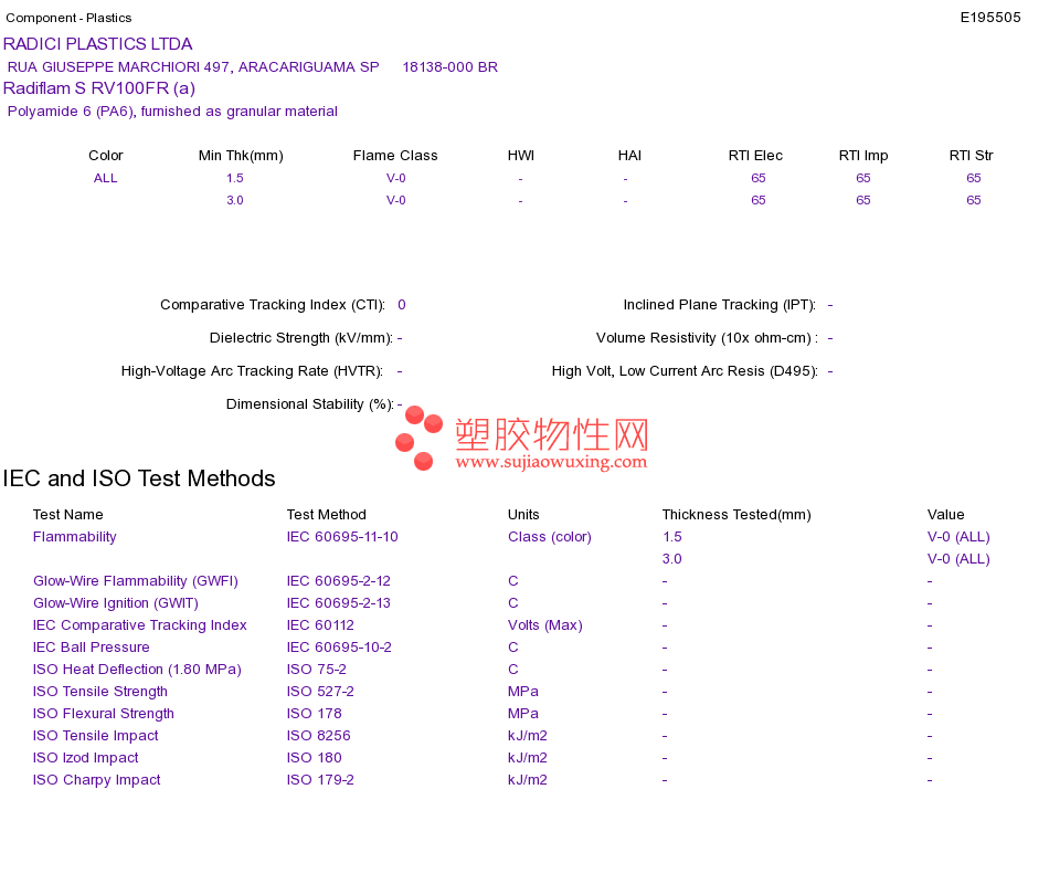 Polyamide 6 (PA6) Radiflam S RV100FR (a)UL黄卡资料请登陆会员后查看,如需电子档资料,请联系客服! 赵生:手机13424755533;QQ:27660005
