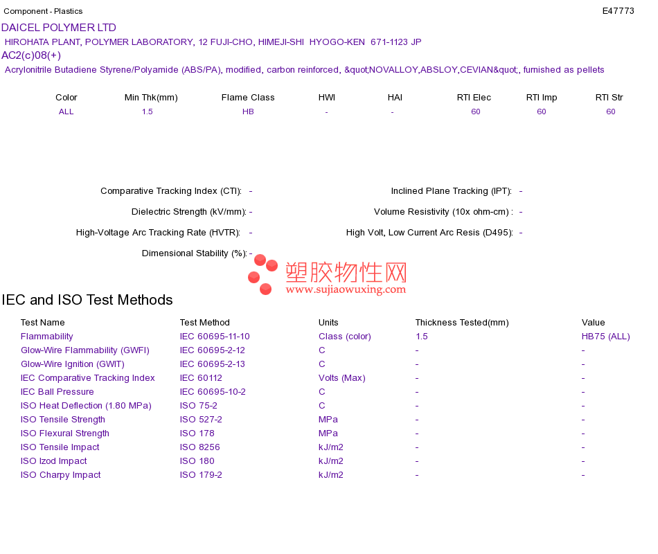 Acrylonitrile Butadiene Styrene/Polyamide (ABS/PA) AC2(c)08(+)UL黄卡资料请登陆会员后查看,如需电子档资料,请联系客服! 赵生:手机13424755533;QQ:27660005