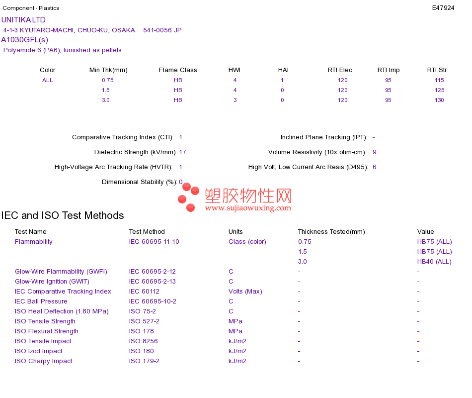 Polyamide 6 (PA6) A1030GFL(s)UL黄卡资料请登陆会员后查看,如需电子档资料,请联系客服! 赵生:手机13424755533;QQ:27660005