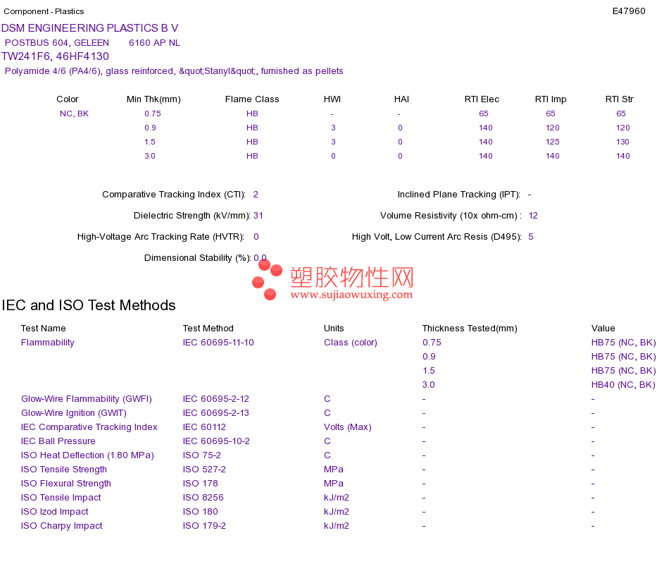 Polyamide 4/6 (PA4/6) TW241F6, 46HF4130UL黄卡资料请登陆会员后查看,如需电子档资料,请联系客服! 赵生:手机13424755533;QQ:27660005