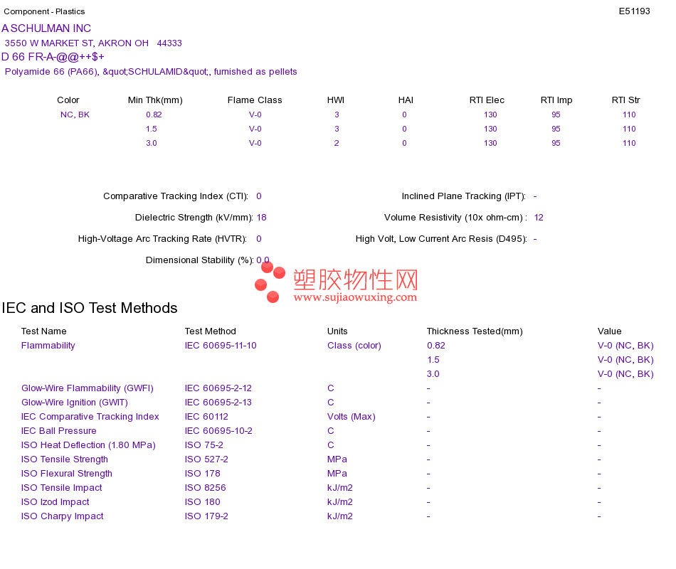 Polyamide 66 (PA66) D 66 FR-A-@@++$+UL黄卡资料请登陆会员后查看,如需电子档资料,请联系客服! 赵生:手机13424755533;QQ:27660005