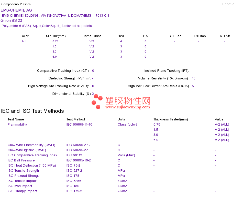 Polyamide 6 (PA6) Grilon BS 23UL黄卡资料请登陆会员后查看,如需电子档资料,请联系客服! 赵生:手机13424755533;QQ:27660005