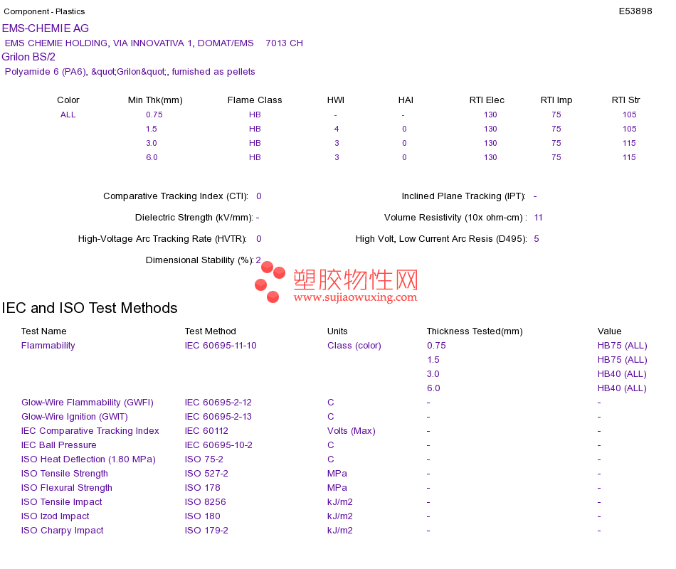 Polyamide 6 (PA6) Grilon BS/2UL黄卡资料请登陆会员后查看,如需电子档资料,请联系客服! 赵生:手机13424755533;QQ:27660005
