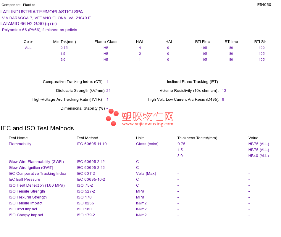 Polyamide 66 (PA66) LATAMID 66 H2 G/30 (q) (r)UL黄卡资料请登陆会员后查看,如需电子档资料,请联系客服! 赵生:手机13424755533;QQ:27660005