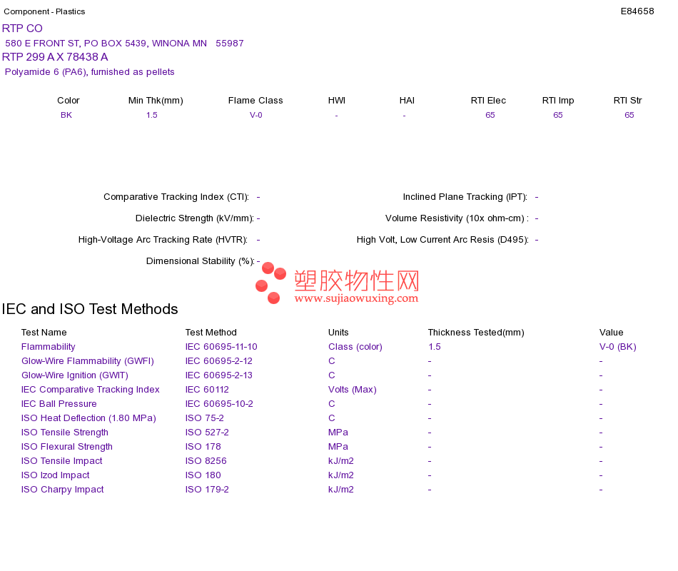 Polyamide 6 (PA6) RTP 299 A X 78438 A UL黄卡