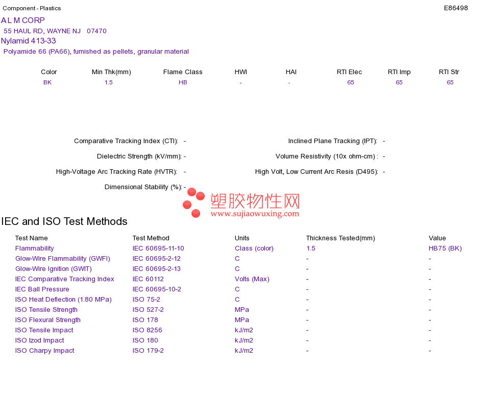 Polyamide 66 (PA66) Nylamid 413-33UL黄卡资料请登陆会员后查看,如需电子档资料,请联系客服! 赵生:手机13424755533;QQ:27660005
