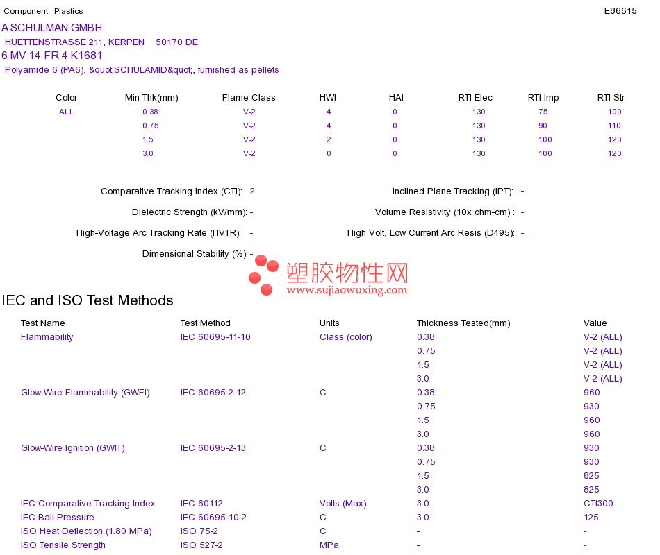 Polyamide 6 (PA6) 6 MV 14 FR 4 K1681UL黄卡资料请登陆会员后查看,如需电子档资料,请联系客服! 赵生:手机13424755533;QQ:27660005