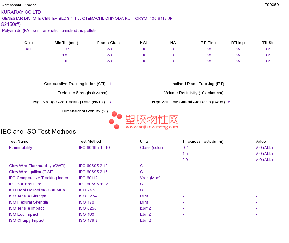 Polyamide (PA) G2450(#)UL黄卡资料请登陆会员后查看,如需电子档资料,请联系客服! 赵生:手机13424755533;QQ:27660005