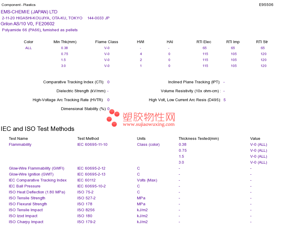 Polyamide 66 (PA66) Grilon AS/10 V0, FE20602UL黄卡资料请登陆会员后查看,如需电子档资料,请联系客服! 赵生:手机13424755533;QQ:27660005