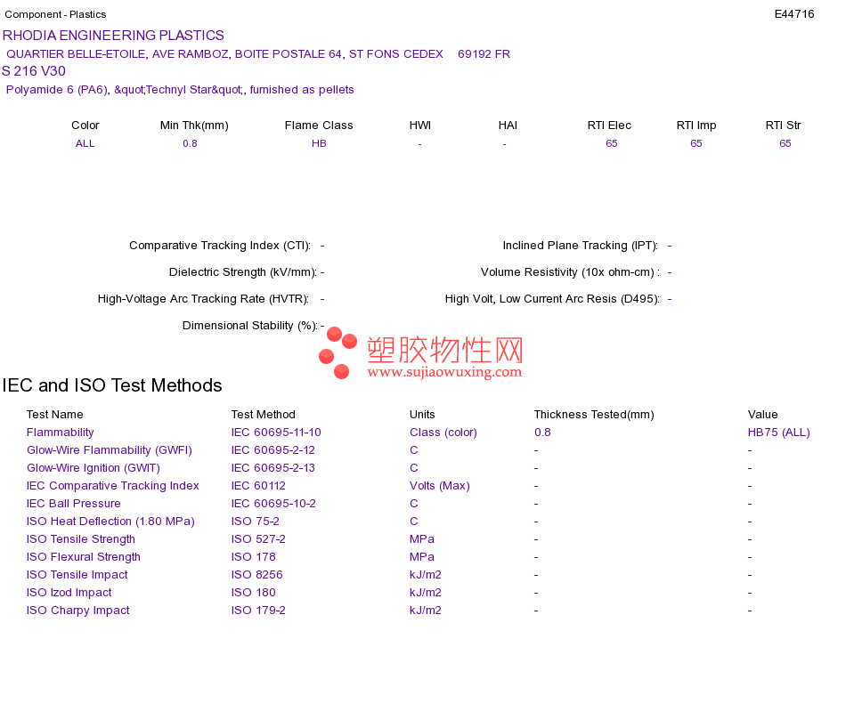 Polyamide 6 (PA6) S 216 V30UL黄卡资料请登陆会员后查看,如需电子档资料,请联系客服! 赵生:手机13424755533;QQ:27660005