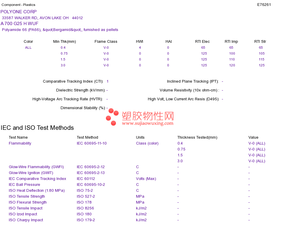 Polyamide 66 (PA66) A 700 G25 H WUFUL黄卡资料请登陆会员后查看,如需电子档资料,请联系客服! 赵生:手机13424755533;QQ:27660005
