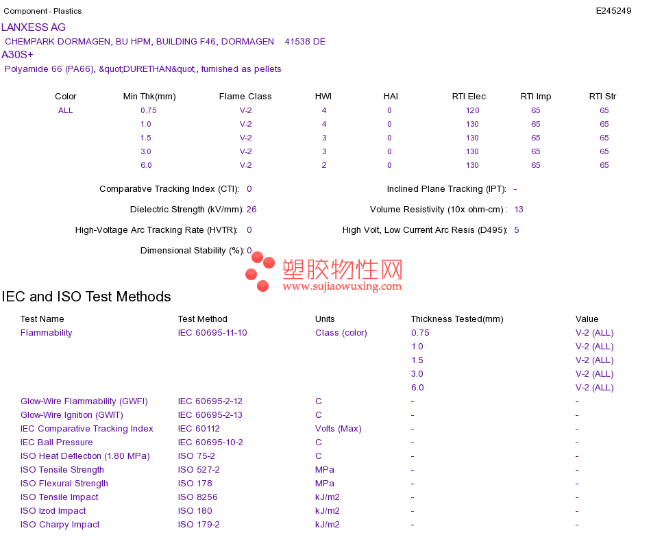 Polyamide 66 (PA66) A30S+UL黄卡资料请登陆会员后查看,如需电子档资料,请联系客服! 赵生:手机13424755533;QQ:27660005