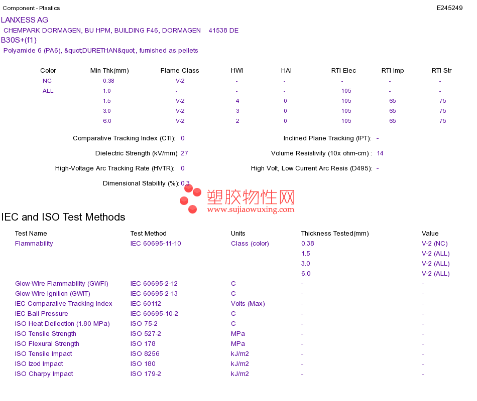 Polyamide 6 (PA6) B30S+(f1)UL黄卡资料请登陆会员后查看,如需电子档资料,请联系客服! 赵生:手机13424755533;QQ:27660005