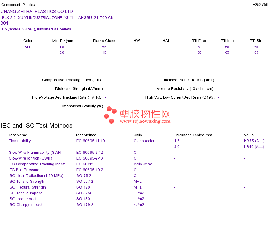 Polyamide 6 (PA6) 301UL黄卡资料请登陆会员后查看,如需电子档资料,请联系客服! 赵生:手机13424755533;QQ:27660005
