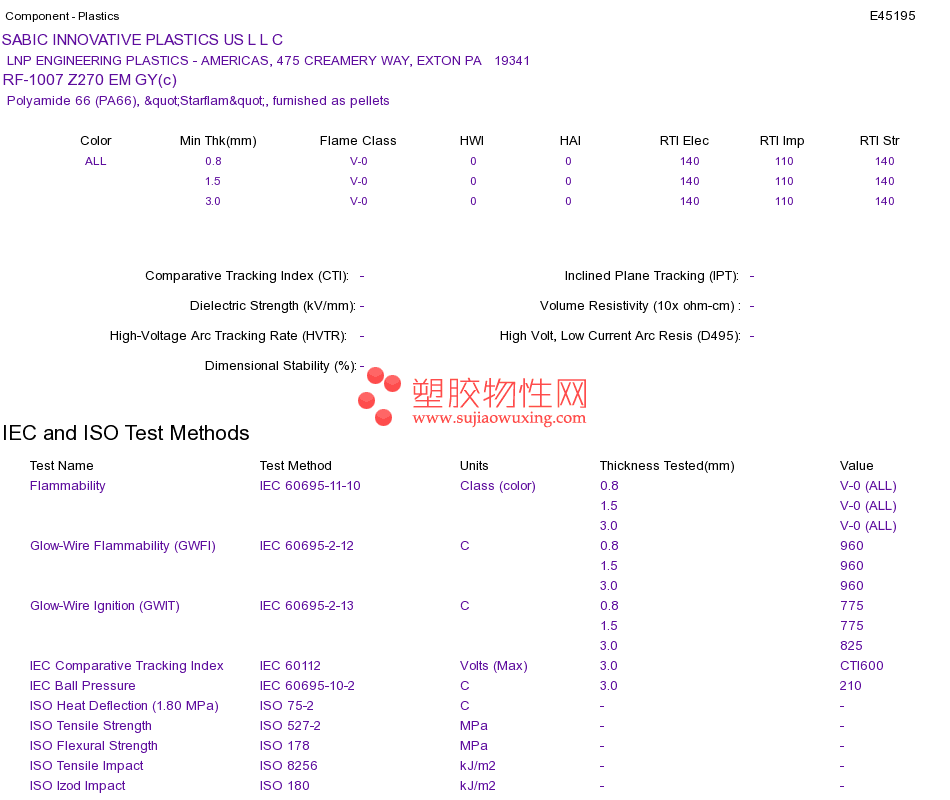 Polyamide 66 (PA66) RF-1007 Z270 EM GY(c)UL黄卡资料请登陆会员后查看,如需电子档资料,请联系客服! 赵生:手机13424755533;QQ:27660005